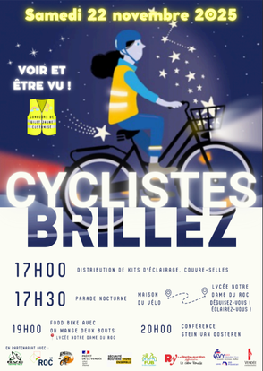 "Cyclistes, Brillez !" revient à La Roche sur Yon le vendredi 22 novembre 2025 à partir de 17h00, à la Maison du Vélo.